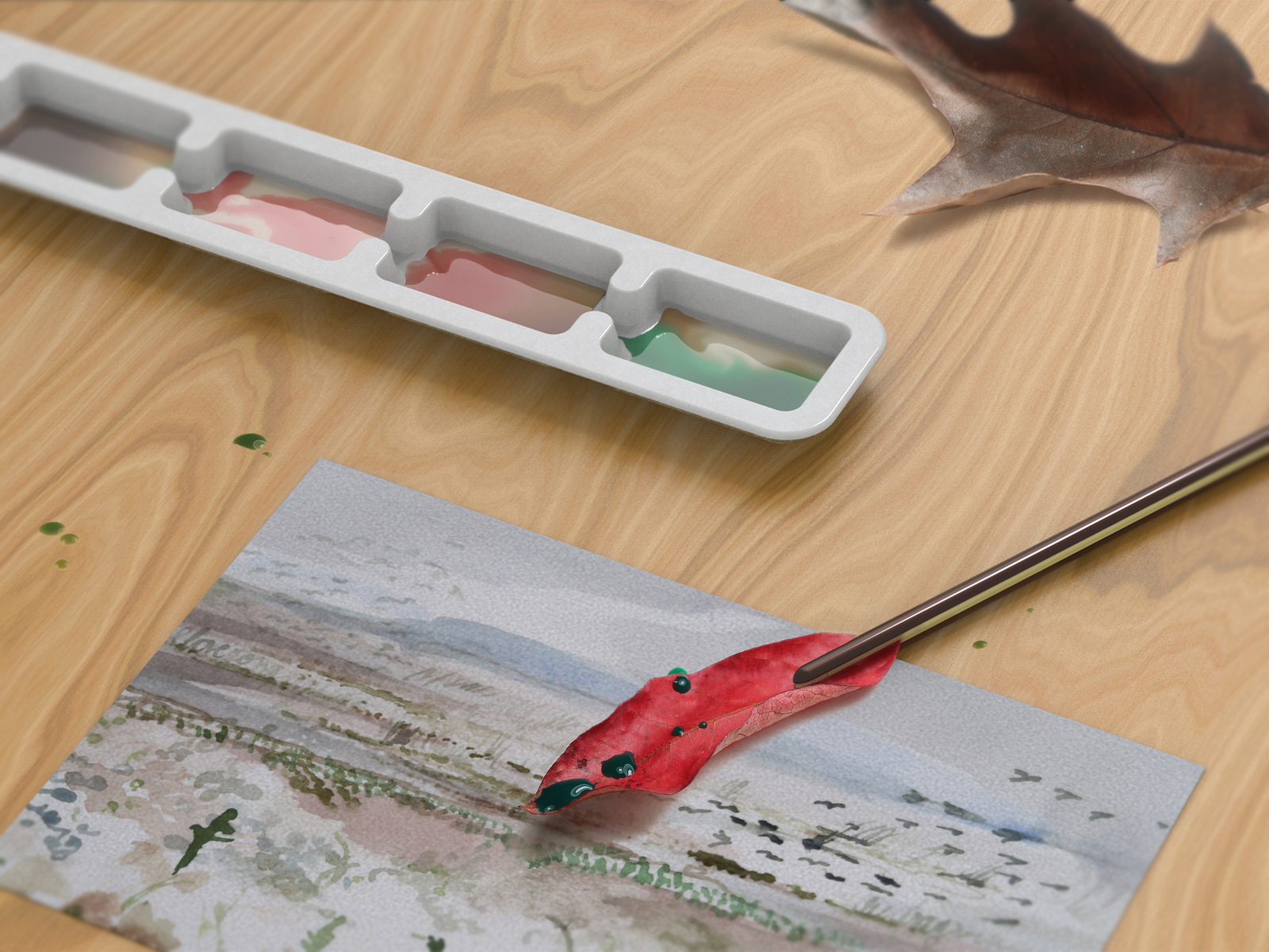 Designs for a brush and paint palette made from brass/ found objects and perennial grasses, respectively. These products are conceived as environmentally-friendly tools that inspire thoughtful contemplation of users’ immediate natural environments.